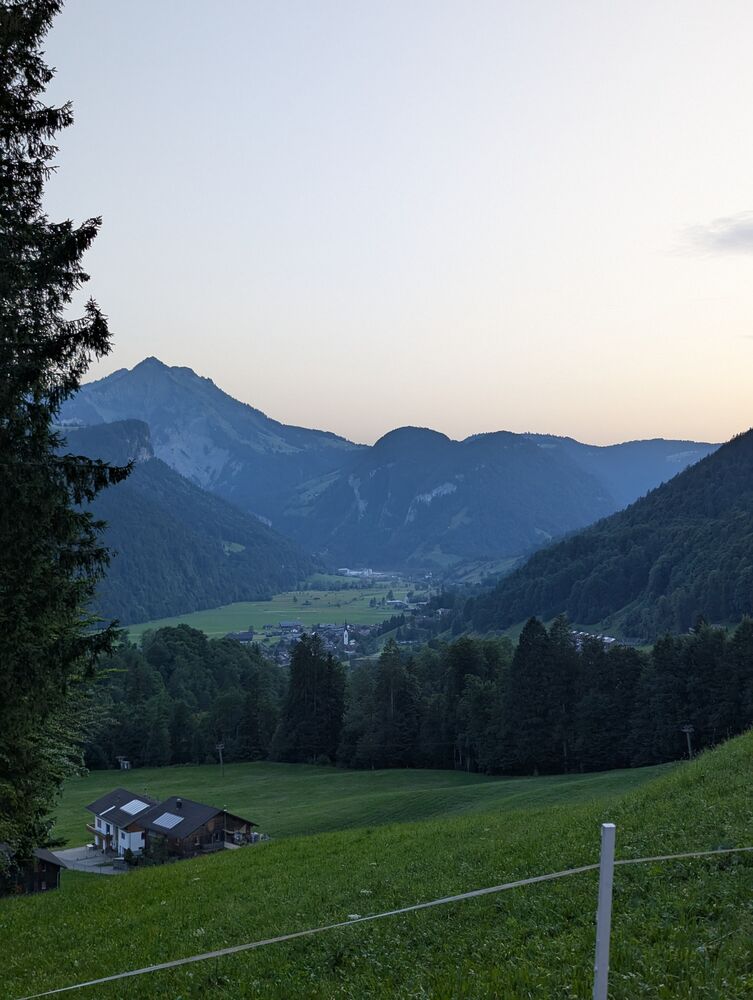 Der Berg im Rücken, Wiesen drumherum, kein Verkehr, kein Trubel. Nur